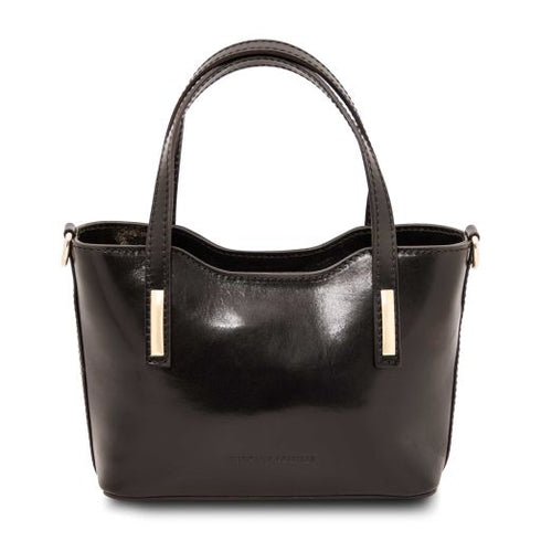 Composition: Soft full grain leather , Polyester lining - Features: Semi-rigid structure, 2 compartments - Outside part: Hot-stamping with Tuscany Leather logo - Inside part: Zip pocket, Central Zipped compartment - Shoulder strap: Detachable and adjustable leather shoulder strap -...