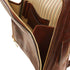 Composition: Full grain hand stained vegetable tanned leather, Cotton lining - Features: Semi-rigid structure, 1 compartment - Outside part: Metal rectangle Tuscany Leather logo, Front pocket with closure, Pocket on the back side with closure - Inside part: Credit card pockets, Zip pocket, 2 open pockets, Pen holder - Shoulder strap: Adjustable leather shoulder straps - Format: Can fit A4 format, Can hold a 13.3'' laptop - Hardware: Silver-tone hardware - Closure: Zip closure - Accessories: Dust Bag