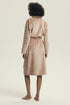 An elegant women's dressing gown made of shiny knit fabric, which gives the whole outfit a subtle and feminine character. The model has a comfortable cut with practical pockets and a semi-circular bottom, which beautifully shapes the silhouette. The dressing gown has a tie at the waist, allowing it to be adjusted to the figure, and is packed in a plastic bag, perfect also as a stylish gift.