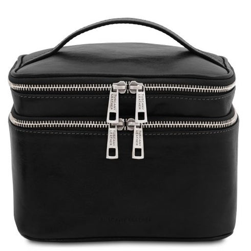 Composition: Full grain hand stained vegetable tanned leather, Cotton lining - Features: Semi-rigid structure, 2 compartments - Outside part: Hot-stamping with Tuscany Leather logo - Inside part: Open pocket, 2 open pockets - Hardware: Brushed brass-tone hardware, YKK metal zips , Silver-tone hardware - Closure: Zip closure on three sides - Accessories: Dust Bag