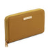 Composition: Pebbled leather - Features: Rigid structure, 2 compartments - Outside part: Metal rectangle Tuscany Leather logo - Inside part: 8 Credit card pockets, Zip coin pocket, 2 bill compartments - Hardware: Gold-tone hardware - Closure: Zip closure on three sides - Accessories: Refined TL box