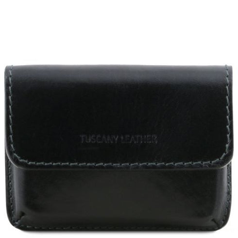 Composition: Full grain leather - Features: Rigid structure, 1 compartment - Outside part: Hot-stamping with Tuscany Leather logo - Hardware: Silver-tone hardware - Closure: Snap button closure - Accessories: Refined TL box