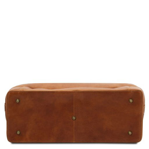 Composition: Soft full grain leather , Polyester lining - Features: Semi-rigid structure, 2 compartments - Outside part: Hot-stamping with Tuscany Leather logo - Inside part: Zip pocket, Central Zipped compartment - Shoulder strap: Detachable and adjustable leather shoulder strap -...