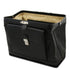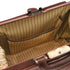 Type: Doctor Bag - Composition: Matte full grain hand stained vegetable tanned leather, Cotton lining - Features: Semi-rigid structure, 1 compartment - Outside part: Protective metal feet on the bottom, Front pocket with closure - Inside part: Open pocket, Credit card pockets, Zip pocket, Pen holder - Hardware: Silver-tone hardware, Brushed brass-tone hardware - Closure: Metal push-lock clasp with key and engraved Tuscany Leather logo - Accessories: Dust Bag