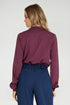 Stylish women's shirt in a blouse cut in a regular style, made of light and breathable viscose. The model has a tie at the neck with a delicate slit at the neckline, which gives the whole a subtle elegance and feminine character. The shirt has long sleeves and buttons down, allowing for a customizable fit. Additionally, delicate pleats at the collar introduce a subtle detail, emphasizing a modern style. Perfect for the office as well as casual occasions.