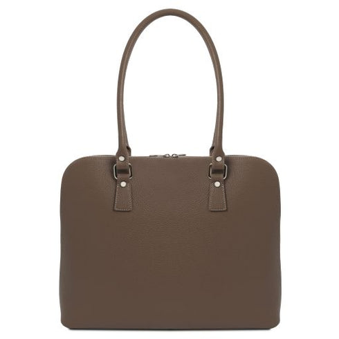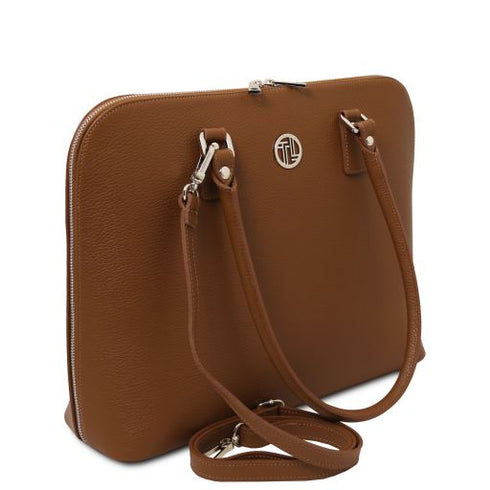 Composition: Soft full grain leather , Polyester lining - Features: Semi-rigid structure, 2 compartments - Outside part: Hot-stamping with Tuscany Leather logo - Inside part: Zip pocket, Central Zipped compartment - Shoulder strap: Detachable and adjustable leather shoulder strap -...