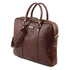 Type: Briefcase - Composition: Full grain hand stained vegetable tanned leather, Cotton lining - Features: Semi-rigid structure, 1 compartment - Outside part: Metal rectangle Tuscany Leather logo - Inside part: Zip pocket, 2 open pockets - Shoulder strap: Detachable and adjustable leather shoulder strap - Format: Can fit A4 format - Hardware: Brushed brass-tone hardware, Silver-tone hardware - Closure: Zip closure - Accessories: Dust Bag