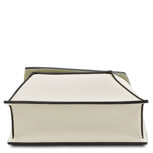 Composition: Soft full grain leather , Polyester lining - Features: Semi-rigid structure, 2 compartments - Outside part: Hot-stamping with Tuscany Leather logo - Inside part: Zip pocket, Central Zipped compartment - Shoulder strap: Detachable and adjustable leather shoulder strap -...
