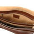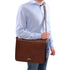 Type: Messenger - Composition: Matte full grain hand stained vegetable tanned leather, Pigskin lining - Features: Soft structure, 2 compartments - Outside part: Metal rectangle Tuscany Leather logo, Pocket on the front side, Pocket on the back side with closure - Inside part: Open pocket, Credit card pockets, Zip pocket, Pen holder - Shoulder strap: Adjustable leather shoulder strap - Format: Can fit A4 format - Hardware: Silver-tone hardware, Brushed brass-tone hardware - Closure: Magnetic button closure - Accessories: Dust Bag