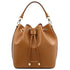 Type: Bucket Bag - Composition: Box smooth leather , Polyester lining - Features: Semi-rigid structure, 1 compartment - Outside part: Gold hot-stamping with Tuscany Leather logo, Protective metal feet on the bottom - Inside part: Zip pocket, 2 open pockets - Shoulder strap: Detachable leather shoulder strap - Hardware: Gold-tone hardware - Closure: Drawstring closure - Handles: Leather detachable handle - Accessories: Dust Bag