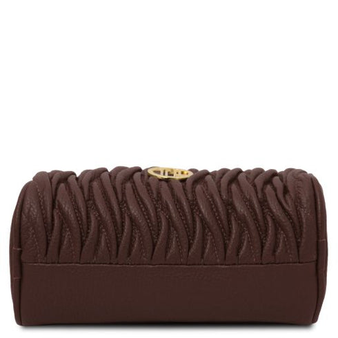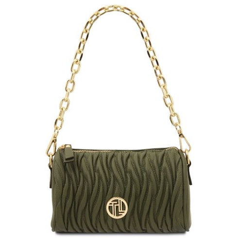 Type: Clutch - Composition: Pebbled leather, Polyester lining - Features: Semi-rigid structure, 1 compartment - Outside part: Metal TL logo - Inside part: Open pocket - Shoulder strap: Detachable and adjustable leather shoulder strap - Hardware: Gold-tone hardware - Closure: Zip closure - Handles: Detachable chain handle - Accessories: Dust Bag