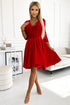Exclusive red asymmetrical dress with a longer back, sleeves, neckline and lace. The skirt with a longer back will work perfectly for dancing. Brand numoco. Polish production.