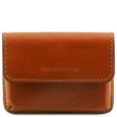 Composition: Full grain leather - Features: Rigid structure, 1 compartment - Outside part: Hot-stamping with Tuscany Leather logo - Hardware: Silver-tone hardware - Closure: Snap button closure - Accessories: Refined TL box