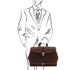 Type: Doctor Bag - Composition: Matte full grain hand stained vegetable tanned leather, Cotton lining - Features: Rigid structure, 1 compartment, Double-bottom - Outside part: Protective metal feet on the bottom, Front pocket with closure - Inside part: Open pocket, Credit card pockets, Zip pocket, Pen holder - Format: Can fit A4 format - Hardware: Brushed brass-tone hardware, YKK metal zips , Silver-tone hardware - Closure: Metal push-lock clasp with key and engraved Tuscany Leather logo - Accessories: Dust Bag