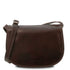 Type: Saddle Bag - Composition: Full grain hand stained vegetable tanned leather, Natural lining - Features: Rigid structure, 3 compartments - Outside part: Hot-stamping with Tuscany Leather logo, Pocket on the back side with closure - Inside part: Zip pocket, Central Zipped compartment - Shoulder strap: Adjustable leather shoulder strap - Hardware: Brushed brass-tone hardware, Silver-tone hardware - Closure: Magnetic button closure - Accessories: Dust Bag