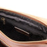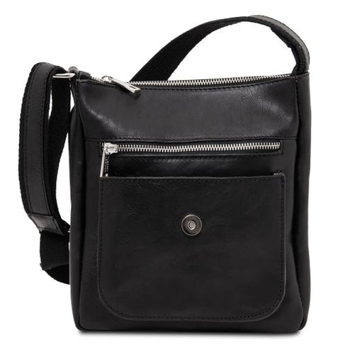 Type: Crossbody Bag - Composition: Matte full grain hand stained vegetable tanned leather, Cotton lining, Pigskin lining - Features: Semi-rigid structure, 1 compartment - Outside part: Metal rectangle Tuscany Leather logo, Pocket on the front side, Front pocket with closure, Pocket on the back side with closure - Inside part: Open pocket, Zip pocket - Shoulder strap: Adjustable leather and cloth shoulder strap - Hardware: Brushed brass-tone hardware, Silver-tone hardware - Closure: Zip closure, Magnetic button closure - Accessories: Dust Bag