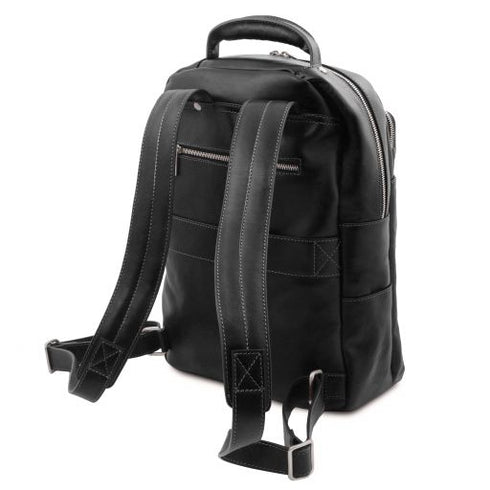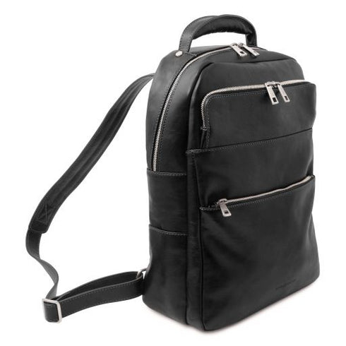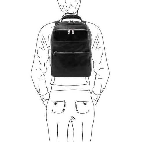 Composition: Matte full grain hand stained vegetable tanned leather, Cotton lining - Features: Semi-rigid structure, 1 compartment - Outside part: Hot-stamping with Tuscany Leather logo, Trolley sleeve to attach to rolling suitcase, 2 front pockets with closure - Inside part: Internal laptop pocket, Zip pocket, 2 open pockets, Internal padded partition - Shoulder strap: Adjustable leather shoulder straps - Format: Can fit A4 format - Hardware: Brushed brass-tone hardware, Silver-tone hardware, YKK metal zips - Closure: Zip closure, Closure with buckle - Accessories: Dust Bag