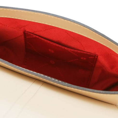 Type: Clutch, Saddle Bag - Composition: Box smooth leather , Polyester lining - Features: Semi-rigid structure, 1 compartment - Inside part: Open pocket, Zip pocket - Shoulder strap: Detachable and adjustable leather shoulder strap, Detachable leather shoulder strap - Hardware: Gold-tone hardware - Closure: Magnetic button closure - Handles: Leather detachable handle - Accessories: Dust Bag