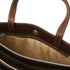 Type: Tote Bag - Composition: Matte full grain hand stained vegetable tanned leather, Cotton lining, Natural lining - Features: Rigid structure, 3 compartments - Outside part: Metal rectangle Tuscany Leather logo - Inside part: Keyring attachment, Open pocket, Credit card pockets, Zipped pockets, Pen holder - Shoulder strap: Detachable and adjustable leather shoulder strap - Format: Can fit A4 format - Hardware: Brushed brass-tone hardware, Silver-tone hardware - Closure: Zip closure - Accessories: Dust Bag