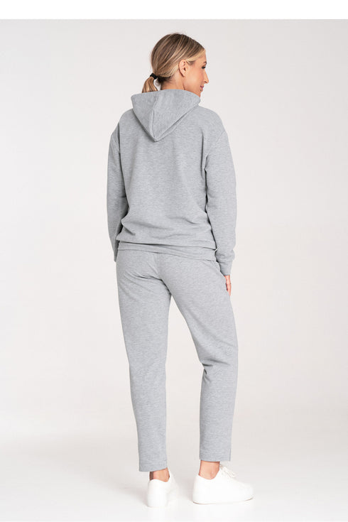 Cotton sweatshirt with long sleeves, loose collar and hood. The bottom of the sweatshirt and the sleeves are finished with ribbed cuffs.