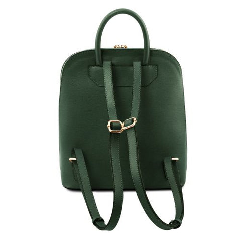 Composition: Saffiano leather, Polyester lining - Features: Semi-rigid structure, 1 compartment - Outside part: Metal rectangle Tuscany Leather logo, Front pocket with closure - Inside part: Zip pocket, 2 open pockets - Shoulder strap: Adjustable leather shoulder straps - Format: Can fit A4 format - Hardware: Gold-tone hardware, Gunmetal hardware - Closure: Zip closure, Zip closure on three sides, Magnetic button closure - Accessories: Dust Bag