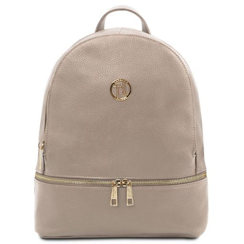 Composition: Pebbled leather, Polyester lining - Features: Soft structure, 1 compartment - Outside part: Front pocket with closure, Pocket on the back side with closure - Inside part: Open pocket, Zip pocket - Shoulder strap: Adjustable leather shoulder straps - Hardware: Gold-tone hardware - Closure: Zip closure - Accessories: Dust Bag
